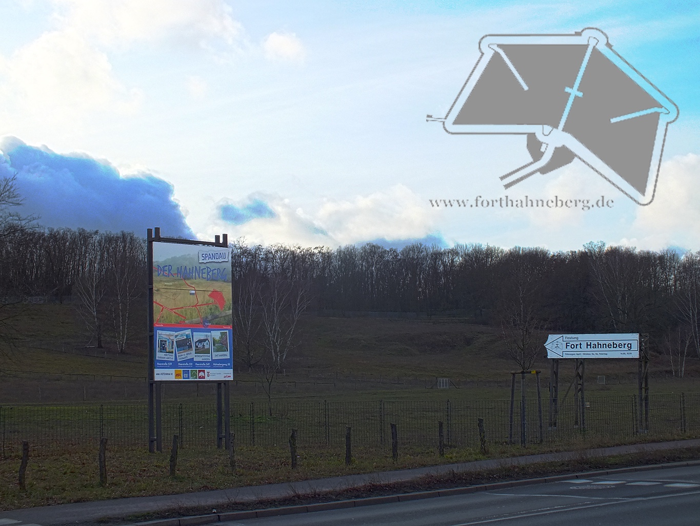 Die Orientierungstafel zum Landschafts- und Naturschutzgebiet Hahneberg an der Heerstraße, Februar 2020