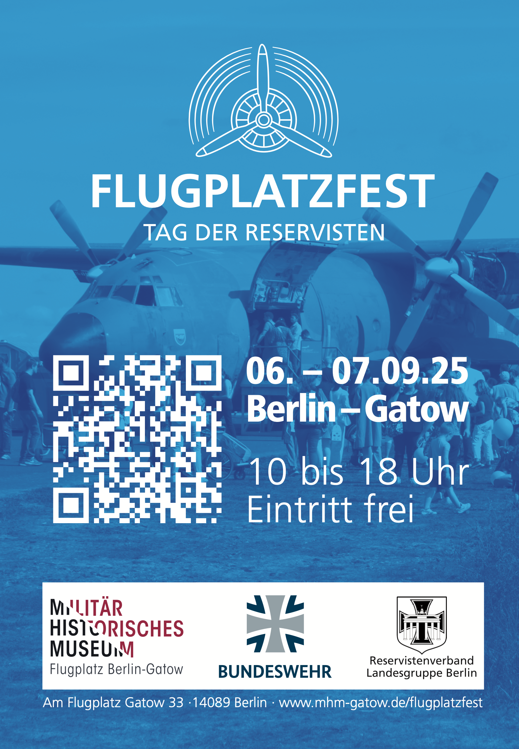 Am Sonnabend, 6. und Sonntag, 7. September 2025 finden Sie uns von 10 bis 18 Uhr beim Flugplatzfest, dem Tag der Reservisten, des Militärhistorischen Museum Berlin-Gatow.